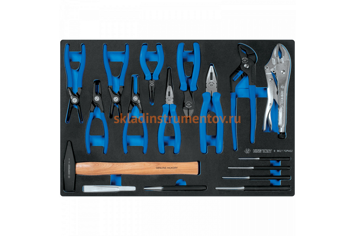 —Набор съемников стопорных колец, молоток, выколотки, ложемент, 17 предметов KING TONY, 9-90217GRV02