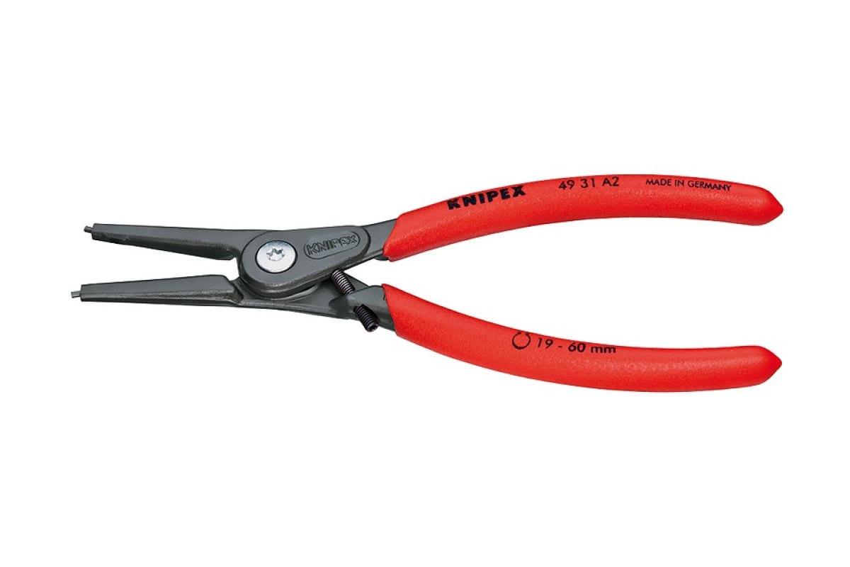 Кольцесъемники KNIPEX KN-4931A2 гарантируют простоту монтажа без перекоса колец. Корпус выполнен из кованой хромованадиевой стали, запрессованные наконечники - из пружинной стали, что обеспечивает продолжительный срок службы. Инструмент отличается встроенной в шарнир пружиной, которая никогда не выскочит и не потеряется, также она защищена от загрязнений. Инструмент обладает высокой нагрузочной способностью.