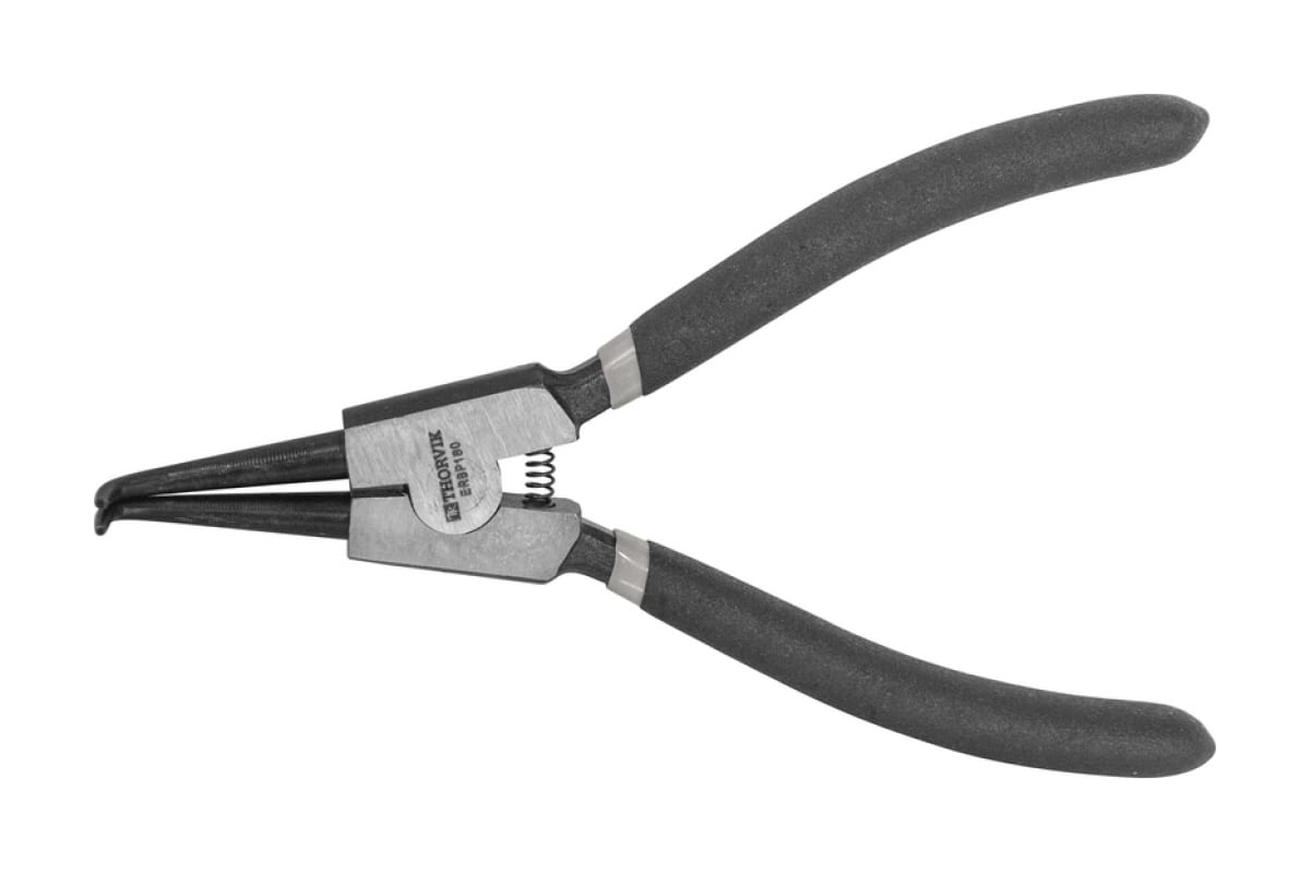 Щипцы для стопорных THORVIK ERBP180 загнутый разжим 180 мм 52191 оснащены рабочей частью из хром-ванадиевой стали. Концы губок загнуты под углом 90°. Инструмент служит для снятия внешних стопорных колец. Длина щипцов - 180 мм. Удобные для удержания рукоятки не скользят в руке.
