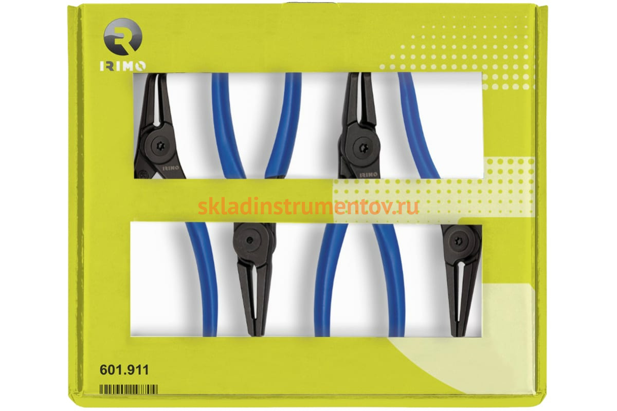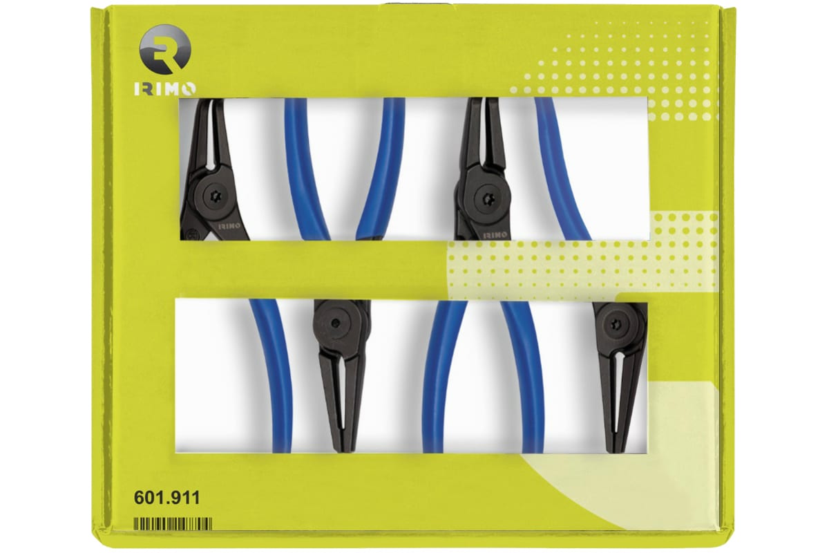 Набор съемников стопорных колец, 4шт IRIMO 601911 состоит из четырех монтажно-деомнтажных инструментов, которые позволяют легко и быстро справиться с заменой и внешних, и внутренних стопорных колец в диапазоне от 19 до 60 мм. Каждый инструмент выполнен из прочной и качественной стали, защищен от ржавчины. В зоне обхвата съемников располагаются удобные нескользящие чехлы-накладки.