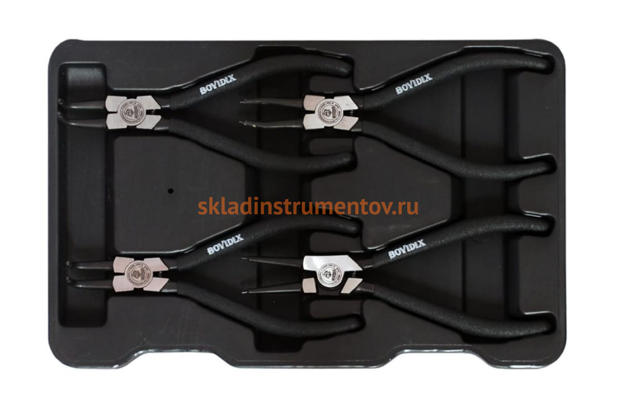 Набор съемников колец, 4 предмета, без кейса BOVIDIX 288400402/0 предназначается для ремонта автомобилей. Все модели оснащаются возвратными пружинами для удобства в работе. Инструменты изготавливаются из легированной стали хром-ванадиевой стали и отличаются высокой прочностью и устойчивостью к ржавлению. В набор входят два внешних съемника и два внутренних.