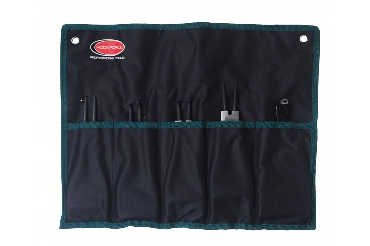 Набор съемников стопорных колец на полотне ROCKFORCE 5 предметов RF-5040A оборудованы антискользящими рукояткам, а также имеют удобную форму инструмента и универсальный тип губок обеспечивает эффективную работу с различными вариантами стопорных колец.