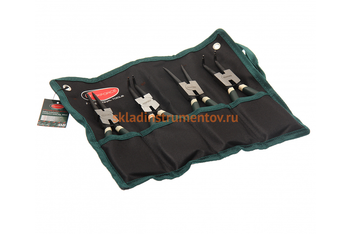 Набор съемников стопорных колец,4 предмета L-200 мм, на полотне ROCKFORCE RF-50408A оборудованы антискользящими рукояткам, а также имеют удобную форму инструмента и универсальный тип губок обеспечивает эффективную работу с различными вариантами стопорных колец.