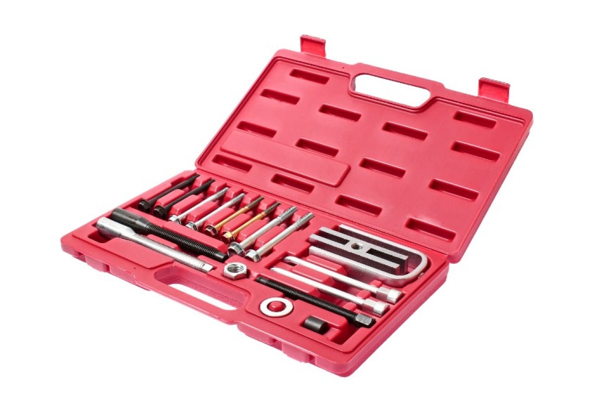 Съемник руля JTC 1943A - это универсальный набор, который позволяет выполнить обслуживание всех известных марок автомобилей как с телескопической рулевой колонкой, так и без нее. Входящая в комплект скоба дает возможность замены пружинного стопорного кольца. Поставляется в ударопрочном кейсе, габариты - 350х120х45 мм. Материал изделий - металл.