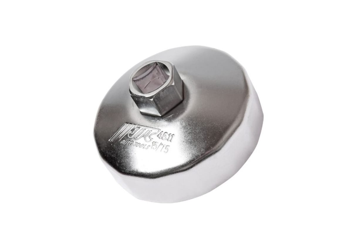 Съемник масляного фильтра 75мм 15-ти гранный чашка JTC 4611 применяется при диагностике автомобилей марок Форд, Мазда, Ленд Ровер, Вольво. Съемник работает совместно с воротком 1/2 дюйма или ключом 21 мм.