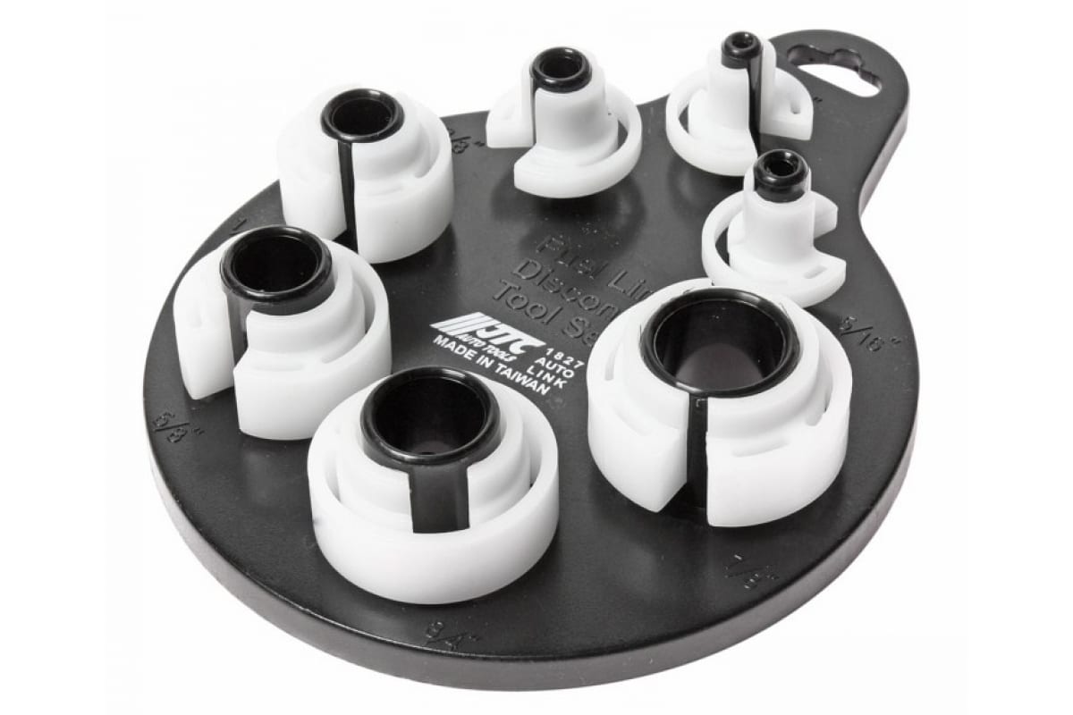 Приспособления для разъединения трубопроводов JTC 1827 поставляются с удобным держателем, который не занимает много места и обеспечивает удобное хранение изделий. Применение данных инструментов позволяет ускорить процесс как разъединения, так и соединения линий топливной, охлаждающей и других систем автомобиля.