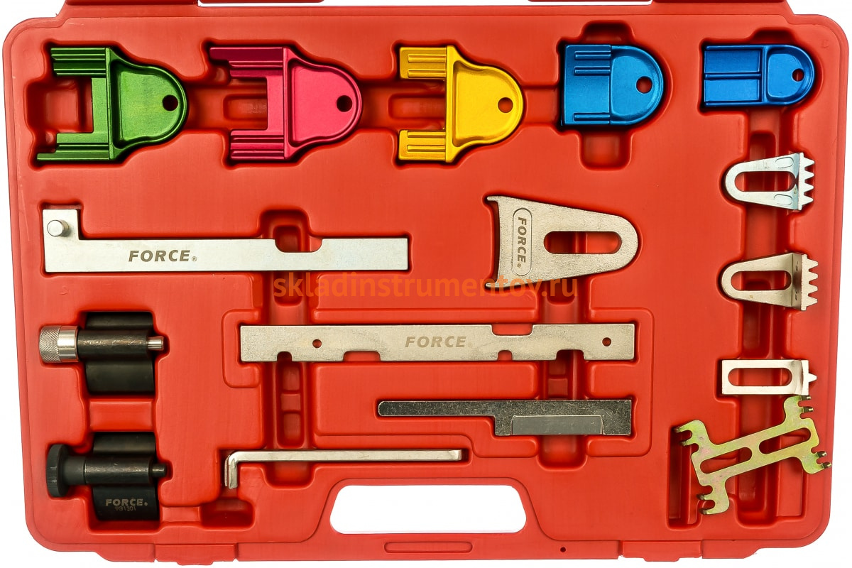 Набор фиксаторов распредвала и маховика ДВС 16шт FORCE служит для проведения ремонтных работ с двигателем автомобилей различных производителей. В комплекте представлено большое количество приспособлений для удобной и надежной фиксации распределительного вала и маховика.