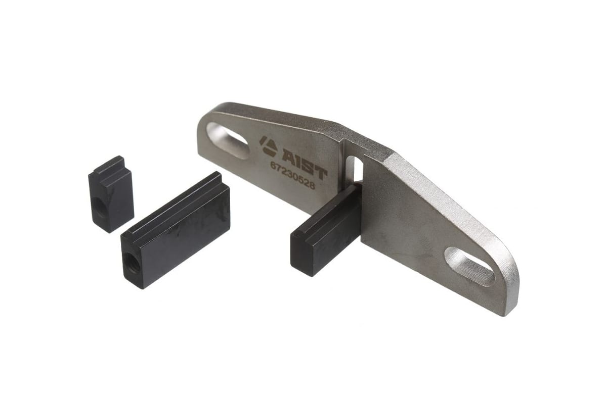 Фиксатор маховика коленвала AIST FORD 303-393 67230528 00-00021212 предназначен для фиксации венца маховика коленчатого вала на автомобилях FORD как бензиновых, так и дизельных моторов. Например, используется, как фиксатор маховика на Форд Фокус 2 и 3. Крепления фиксатора может осуществляеться вместо стартера двигателя. Специальные приспособления с переходниками может применяться для двигателей VOLVO.