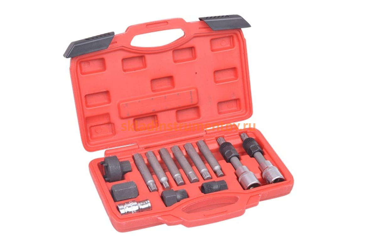 Съемник шкива генератора 13 предметов AE&T TA-A1079 удобен в использовании за счет небольшого размера. Узкий профиль инструмента позволяет без труда решить проблему перетянутого шкива.