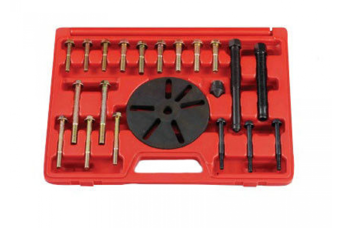 Универсальный съемник шкивов для двигателей GM FORCE 921G1 поставляется в прочном кейсе из пластика.