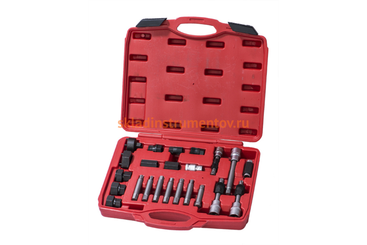 Набор съемников шкивов генератора, 24 предмета ROSSVIK ST077 используется для оперативного и безопасного демонтажа муфты свободного хода при замене фрикционного кольца.