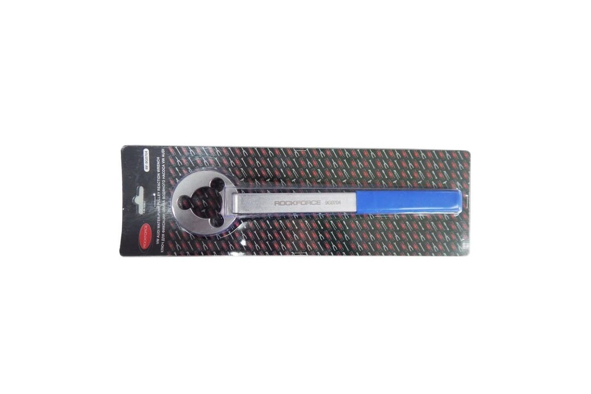 Ключ для фиксации шкива водяного насоса ROCKFORCE RF-9G0704 подходит для двигателей VW и Audi. Обеспечивает безопасную фиксацию и облегчает ослабление болтов на шкиве. Чехол на рукоятке делает захват ключа более удобным.