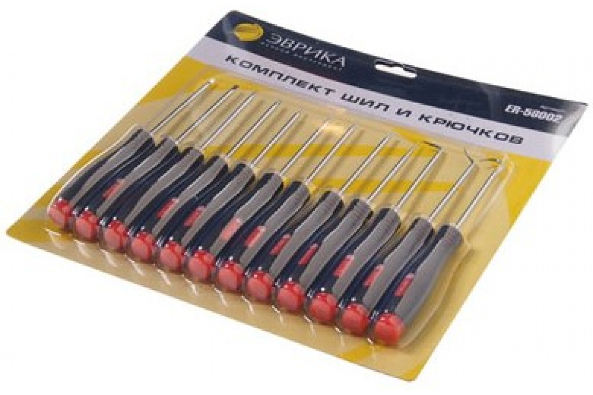 Набор: шило, крючки, отвертки, 12 предметов ЭВРИКА ER-58002 - универсальный комплект ручных инструментов для быстрого и аккуратного демонтажа элементов из узлов автомобиля.