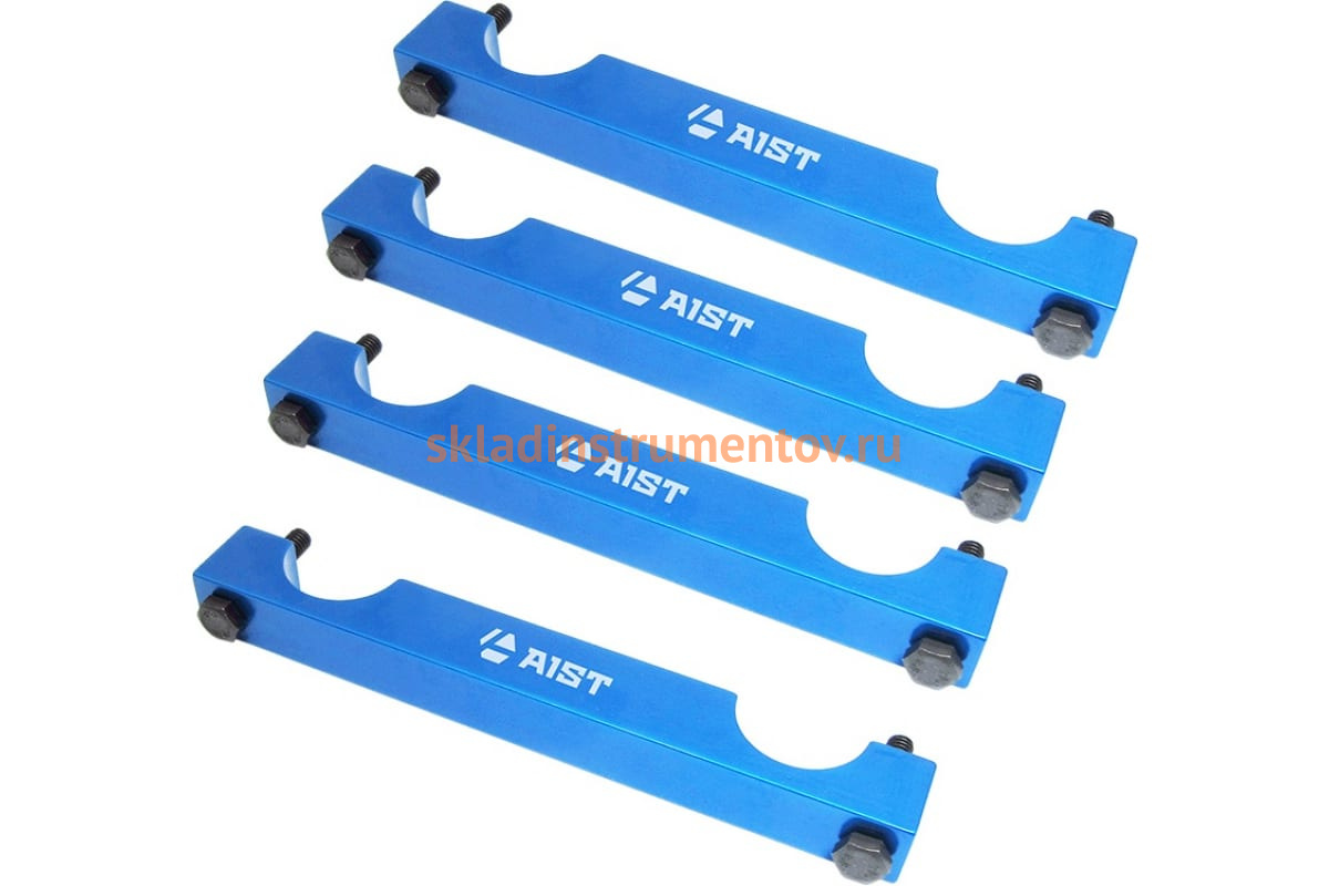 Набор специальных инструментов для установки распределительного вала двигателей M276, M278 и M157 в требуемое положение AIST 67230330 00-00019675 применяется для обслуживания двигателей у автомобилей Mercedes Benz W221, W222, S63, GL-Класс (X166), ML 63 AMG (W166), CLS 63 AMG, C218 и мн. др, начиная с 2010 года, оснащенных распределительным впрыском топлива третьего поколения и турбонаддувом. Фиксаторы изготовлены из прочного и легкого материала - алюминия. Оригинальный номер инструмента: 276 589 01 40 00. Для удобства хранения и транспортировки изделия упакованы в кейс.