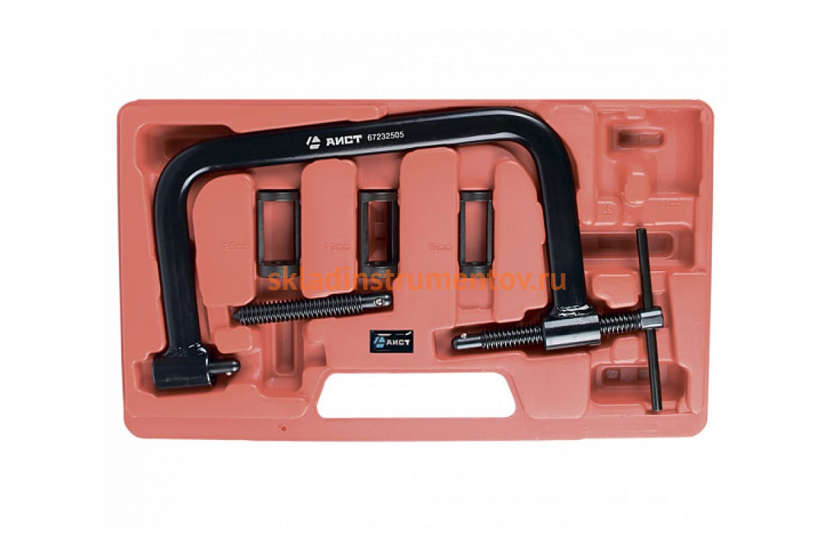 Рассухариватель клапанов устройство для зажима пружин в наборе 5 предметов AIST 67232505 00-00007935 укомплектован несколькими толкателями, различными по размеру.