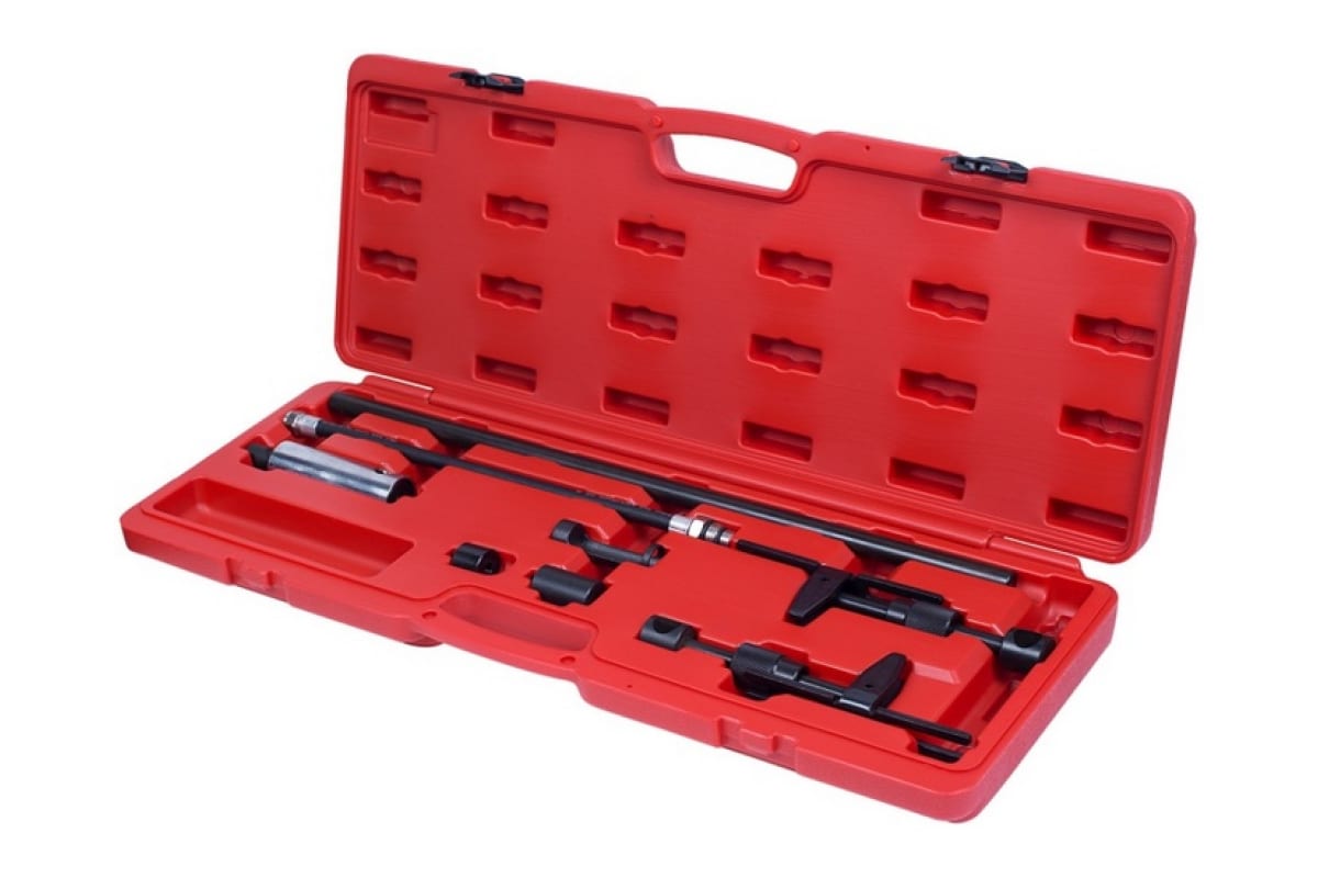 Рассухариватель клапанов универсальный кейс 8шт МАСТАК 103-10008C служит для применения на профессиональных СТО, в автосервисах и гаражах для ремонта и обслуживания автомобилей - сжатия пружин впускных и выпускных клапанов. Подходит для 2, 16, 20 и 24-клапанных двигателей. Комплект позволяет работать как на демонтированной, так и на не демонтированной ГБЦ (есть возможность подключения сжатого воздуха через специальный адаптер - в комплекте). Специальная конструкция упора позволяет работать без дополнительной помощи. Специализированные кронштейны способствуют возможности изменения угла наклона опорной штанги. Опорная втулка 22 мм имеет прорезь.