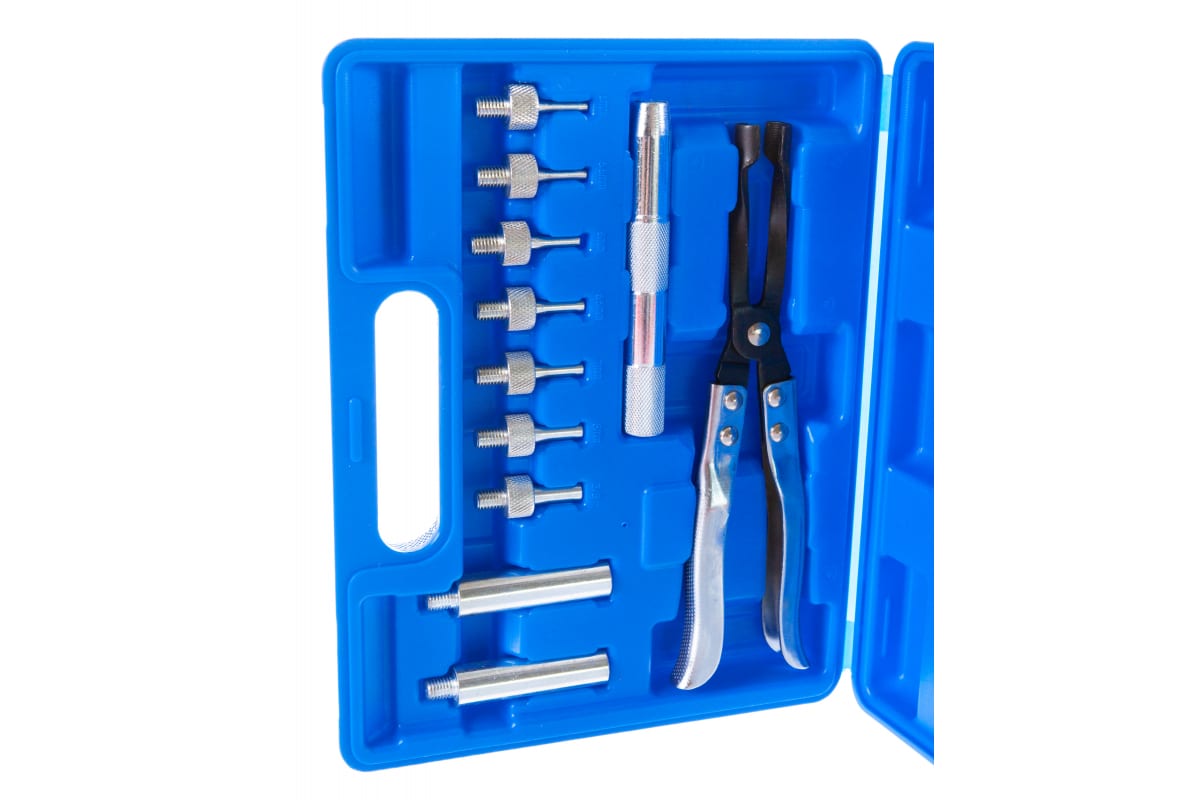 Набор для снятия и установки маслосъемных колпачков ROCKFORCE RF-911G2 включает в себя специальные щипцы для захвата и направляющие, при помощи которых можно безопасно снять колпачки без повреждения деталей в двигателе.