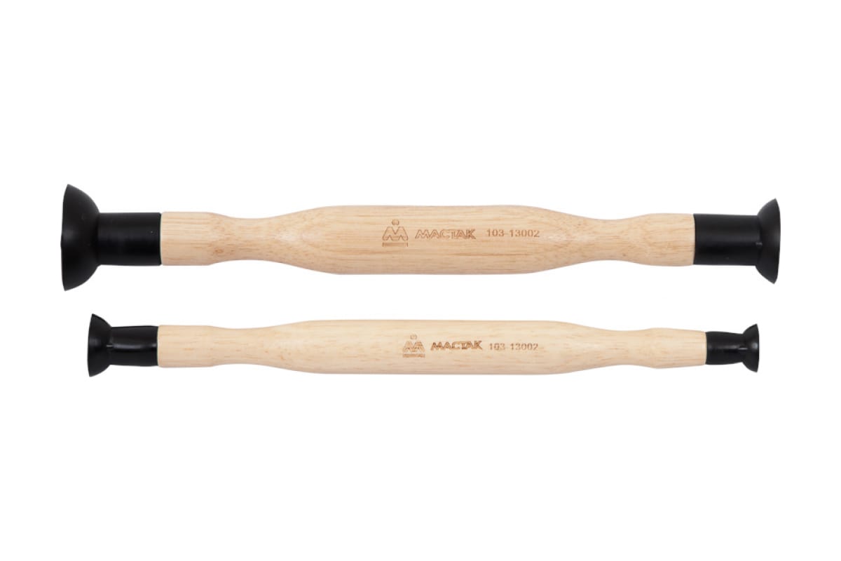 Приспособления для притирки клапанов МАСТАК 103-13002 предназначены для аккуратной и высокоточной отшлифовки элементов, входящих в конструкцию ГБЦ автомобиля. В комплект поставки входят две скалки с вакуумными присосками-наконечниками размером 16/21 и 29/35 мм.