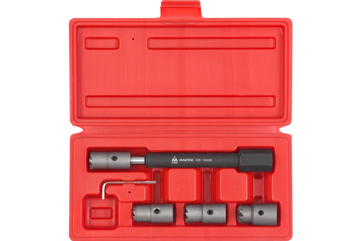 Набор фрез для правки сёдел дизельных форсунок, кейс, 6шт МАСТАК 103-15006C широко распространен для использования в профессиональных сервисах и мастерских по ремонту и обслуживанию автомобилей. Все компоненты удобно располагаются в закрывающемся футляре с отдельными ячейками для каждого элемента.
