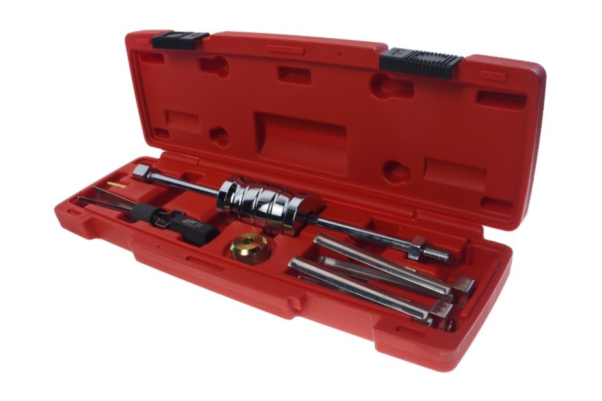 Набор инструментов для снятия топливных форсунок FORD, VOLVO JTC JTC-6628 включает в себя обратный молоток, при помощи которого снятие происходит легко и быстро. Правильное удаление обеспечивает целостность окружающих компонентов головки двигателя. Комплект поставляется в кейсе. Набор применяется для двигателей: 1.0L, 2.0L Duratec; 1.0L, 1.5L, 1.6L, 2.0L, 2.3L, 2.7L, 3.5L EcoBoost; 2.0L, 3.5L GTDI.