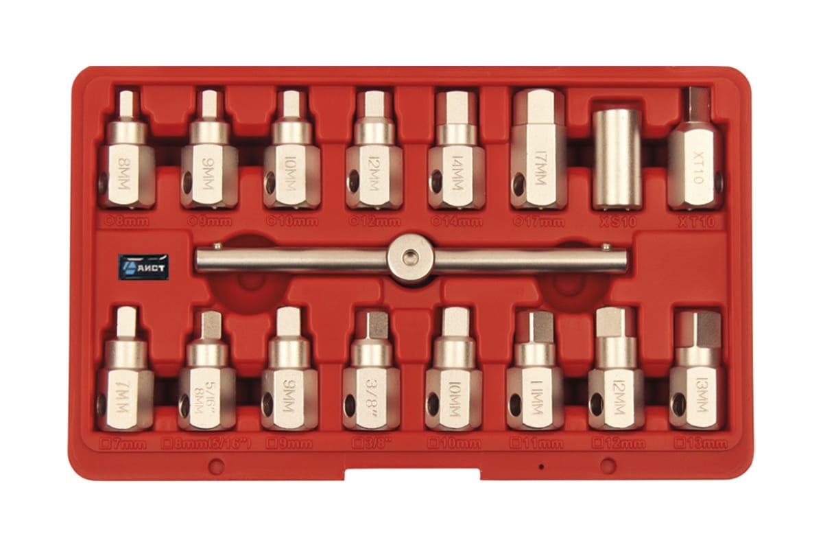 Набор насадок для сливных пробок 17шт в кейсе AIST 00-00009615 используется для обслуживания автомобилей различных марок и моделей. Обеспечивает легкость ослабления и затягивания пробок сливных отверстий. В комплекте предусмотрен закрывающийся кейс для удобного хранения и транспортировки насадок.