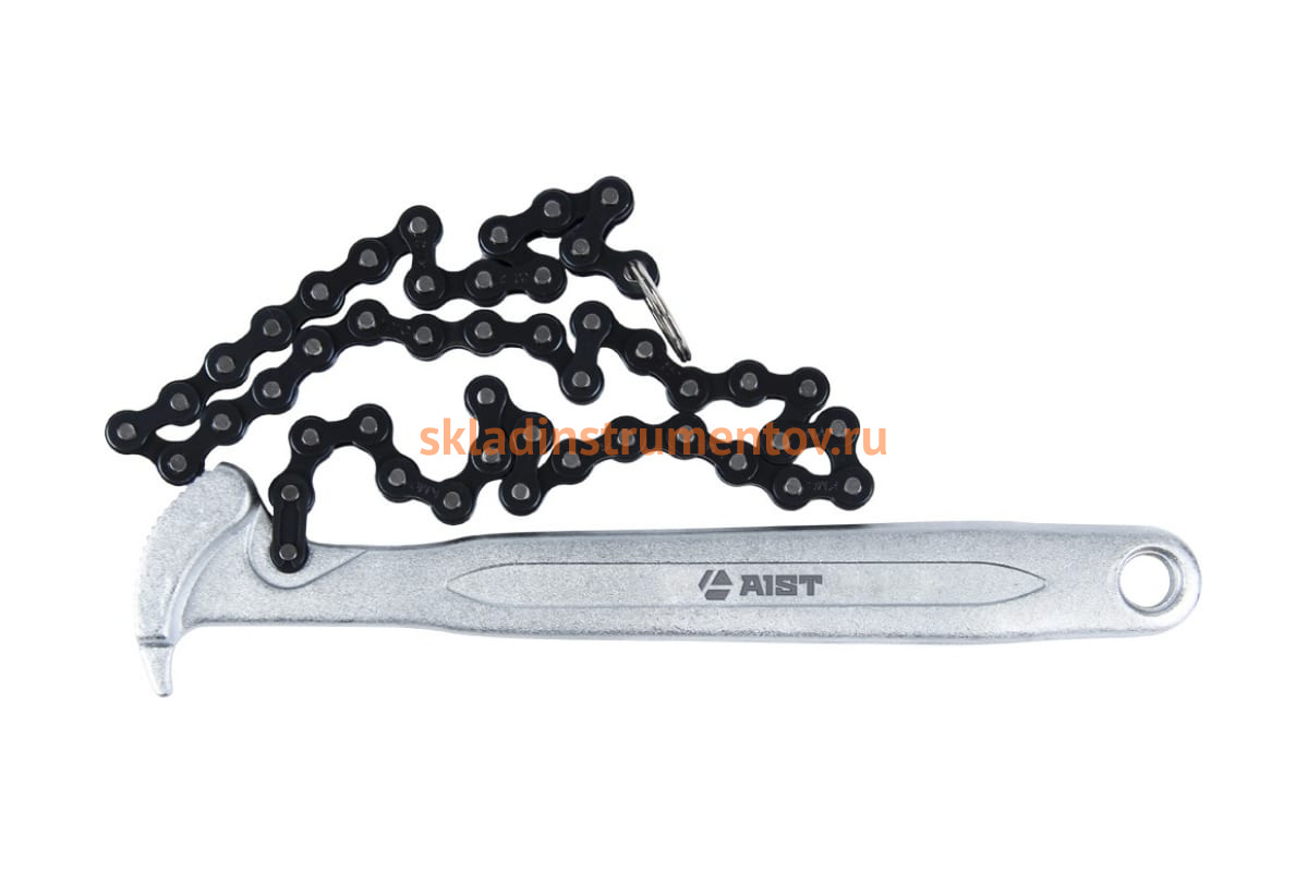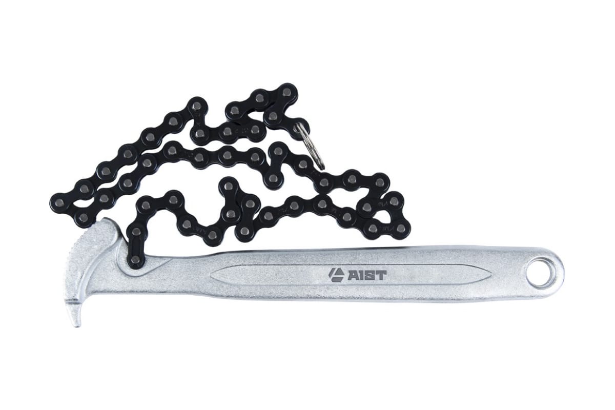 Цепной рычажный съемник (ключ) масляного фильтра 30-160мм AIST 67254209 00-00006943 - специализированное приспособление для эксплуатации на станциях технического обслуживания автомобилей для легкого и быстрого процесса замены масляного фильтра, который имеет размер в диапазоне от 30 до 160 мм.