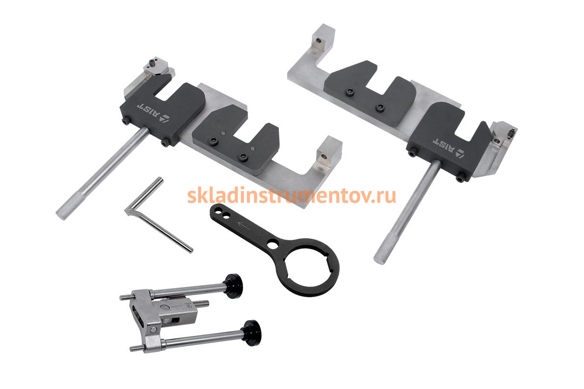 Набор инструмента AIST для установки фаз ГРМ BMW для N63/S63 67230034 00-00019694 предназначен для настройки и регулировки фаз ГРМ на двигателях BMW N63/S63 V8 4.4L, выпускавшихся после сентября 2012 года. Набор фиксаторов позволяет: произвести проверку и регулировку натяжителя приводной цепи, зафиксировать распределительные валы и зафиксировать коленвал в BMT.