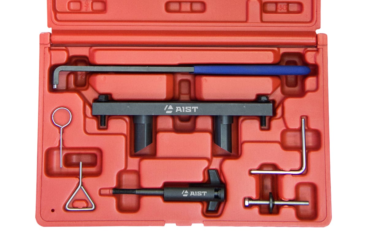 Набор инструментов для установки фаз ГРМ AIST VAG 2.0 FSI/TFSI 00-00017057 используется для установки фаз ГРМ автомобилей VAG с двигателями 2.0 FSI/TFSI серии EA113. Применяется для замены межвальной цепи ГРМ, настройки фаз ГРМ и для других ремонтных работ.