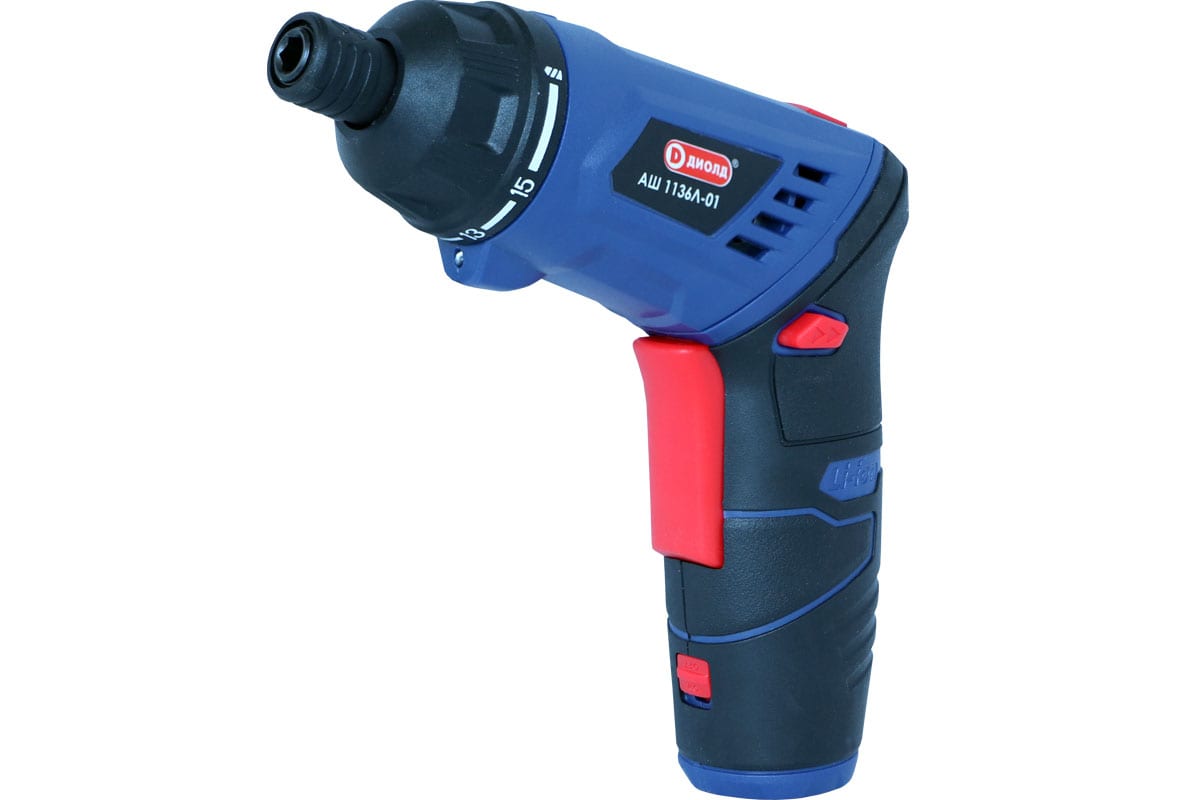 Аккумуляторный шуруповерт ДИОЛД АШ-1136 Л-01 10021050 предназначен для закручивания и откручивания крепежа. Он оснащен литий-ионной аккумуляторной батареей емкостью 1.5 А*ч. Благодаря подсветке рабочей зоны достигается отличная видимость в условиях слабого освещения. Функция блокировки шпинделя обеспечивает быструю замену рабочей оснастки.