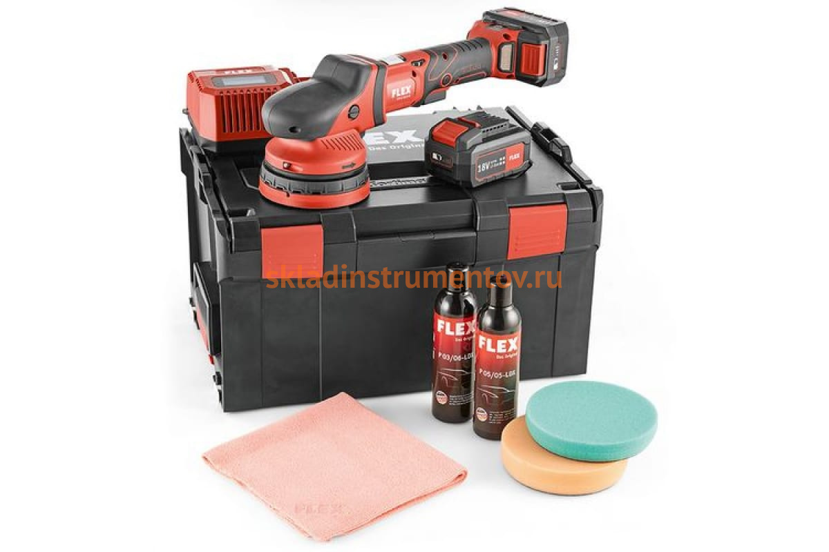 Эксцентриковая полировальная машина FLEX XCE 8 125 18.0-EC/5.0 P-Set на аккумуляторе 461245 подходит для термочувствительных лакокрасочных покрытий.