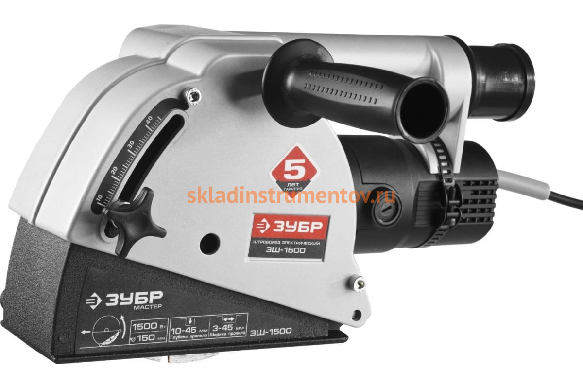 Штроборез ЗУБР ЗШ-1500 - незаменимый электроинструмент для создания продольных каналов в стенах и потолках. Применяется для прокладки электропроводки, кабелей связи, мультимедийных систем, систем кондиционирования. Два параллельно расположенных алмазных круга диаметром 150 мм прорезают отверстия - шириной от 3 - 45 мм, глубиной от 10 - 45 мм - в бетоне и кирпичной кладке. Плавный пуск предотвращает резкий стартовый рывок и травмирование пользователя. Диаметр патрубка составляет 37 мм.