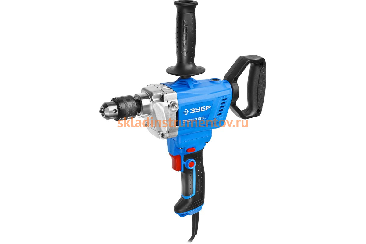 Дрель-миксер Зубр ПРОФЕССИОНАЛ ЗДМ-820 РМ - профессиональный инструмент с усовершенствованной конструкцией. Он используется для сверления отверстий в дереве, стали, кирпиче, а также для размешивания красок, бетона и различных растворов. Ключевой патрон способствует надежной фиксации оснастки. Дополнительная вращающаяся рукоятка обеспечивает комфортную работу.