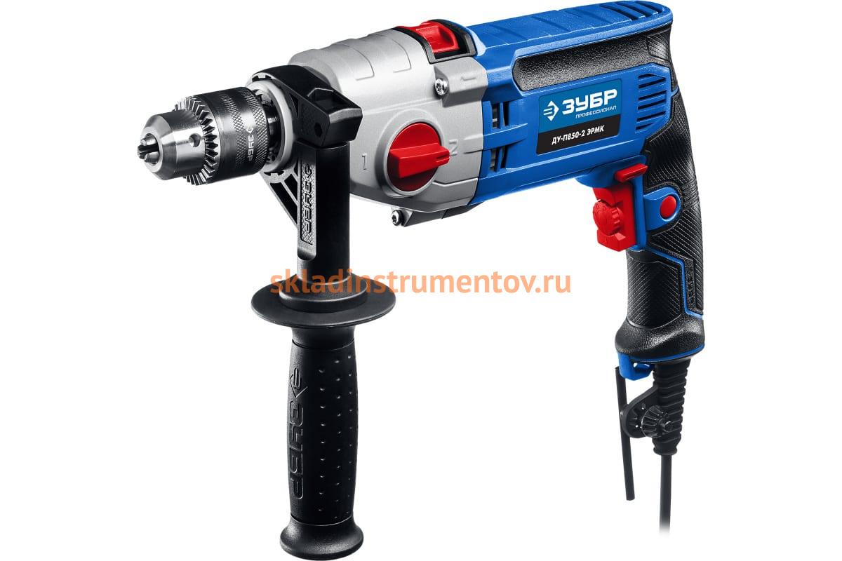 Ударная дрель Зубр ПРОФЕССИОНАЛ ДУ-П850-2 ЭРМК надежна и эффективна в эксплуатации. Подходит как для сверления отверстий, так и монтажа резьбовых соединений (при наличии соответствующей оснастки). Имеет мощный двигатель и ударный механизм.