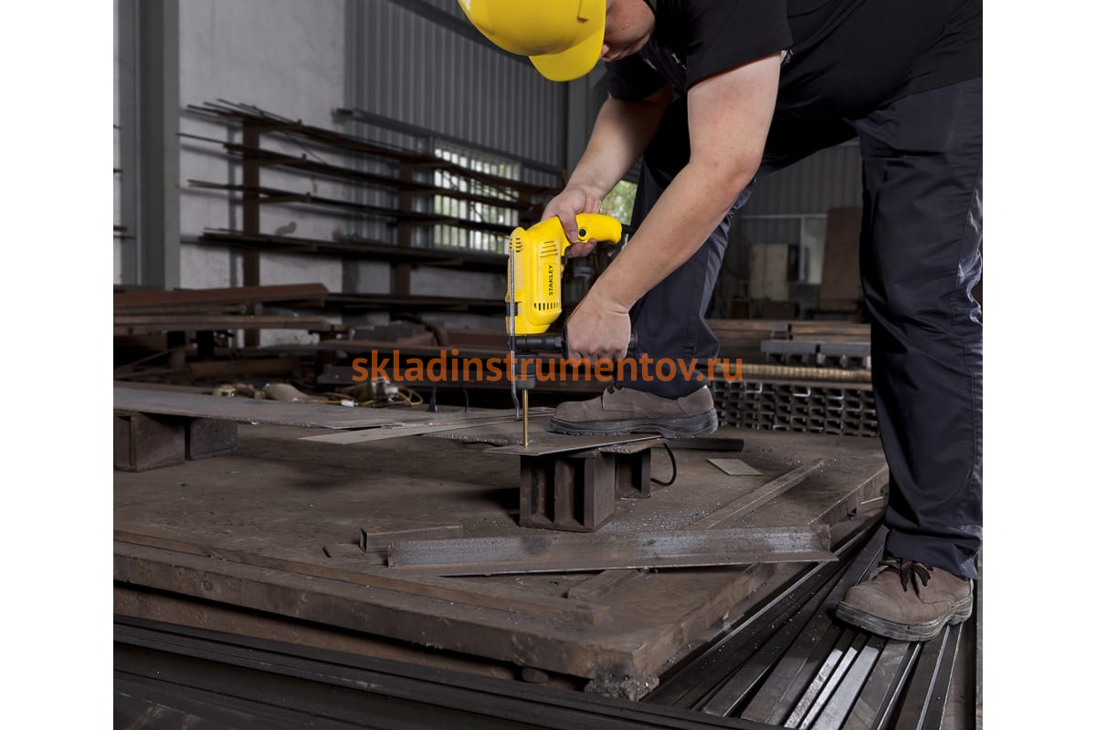 Ударная дрель Stanley SDH600 снабжена ключевым патроном, который предотвращает ослабление затяжки оснастки. Плавная регулировка скорости позволяет работать с разными материалами. Фиксация клавиши "Пуск" делает продолжительную работу с инструментом более комфортной. Основание провода имеет специальное крепление для ключа и насадок.