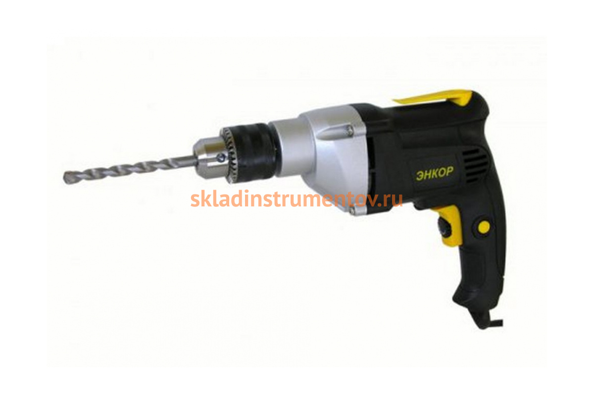 Дрель Энкор ДЭ-500ЭР/13М 50069 применяется для сверления отверстий в различных материалах, например, дереве, металле, пластике и других. Данный инструмент оборудован металлическим ключевым патроном, позволяющим использовать оснастку диаметр хвостовика которой составляет от 1.5 до 13 мм. Дрель оснащена функцией реверса для смены направления вращения и упрощения извлечения оснастки из материала при заклинивании.