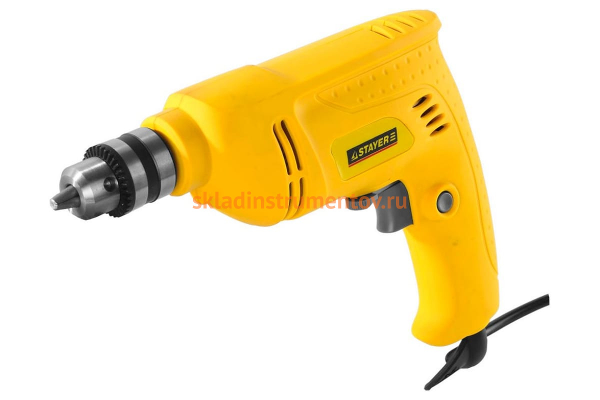 Дрель STAYER SRD-400 используется для сверления отверстий в древесине, металле, кирпиче. Модель оснащена трехкулачковым ключевым патроном, который обеспечивает надежное закрепление оснастки. Скорость вращения шпинделя регулируется усилием нажатия на пусковую клавишу, что очень удобно при засверливании. Данный инструмент является представителем бытового класса и не рассчитан на постоянное и нагруженное использование.