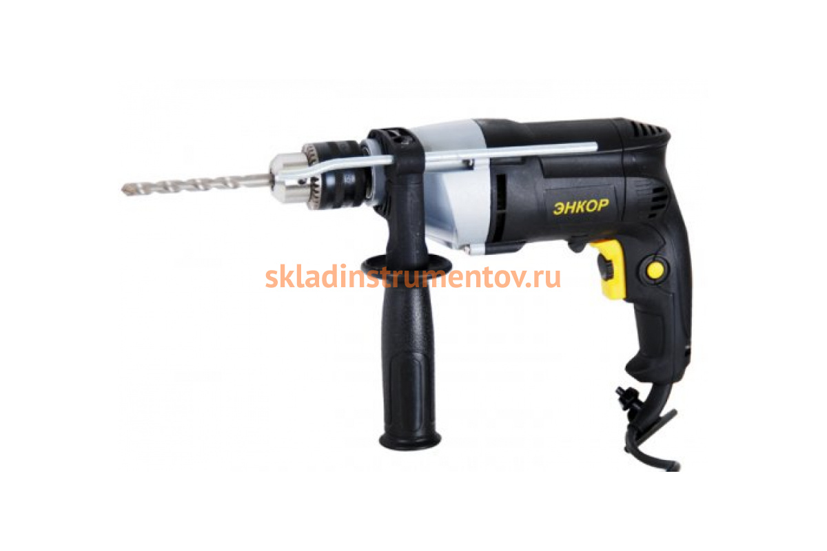 Дрель Энкор ДЭ-600ЭР/13 50070 необходима в строительстве и в домашнем ремонте для сверления отверстий в различных материалах. Диаметр отверстий в дереве достигает 40 мм, в стали - 13 мм. Инструмент обладает оптимальной мощностью и удобным управлением. Рядом с кнопкой "Пуск" расположено регулировочное колесико для изменения числа оборотов от 0 до 1100 об/мин. Функция реверса позволяет легко и аккуратно извлечь сверло из отверстия. При наличии соответствующей оснастки возможно использовать дрель в качестве шуруповерта.