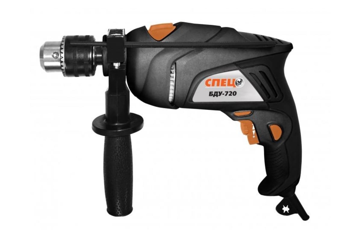 Ударная дрель СПЕЦ-БДУ-720 СПЕЦ-1496 предназначена для сверления отверстий в древесине, металле, бетоне и кирпичной кладке. В зависимости от типа материала пользователь имеет возможность регулировать скорость вращения шпинделя в диапазоне от 0 до 3000 об/мин. Для удобства выведения застрявшего в материале сверла имеется функция реверса. Фиксатор пусковой клавиши исключает необходимость постоянно держать на ней палец.