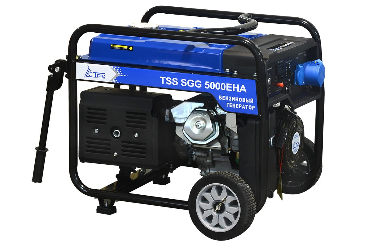Бензогенератор ТСС SGG 5000 EHA 190002 обладает небольшими размерами и располагается внутри прочной рамы, которая частично поглощает вибрации и значительно упрощает продолжительную работу. Наличие двух розеток позволяет подключать несколько потребителей.