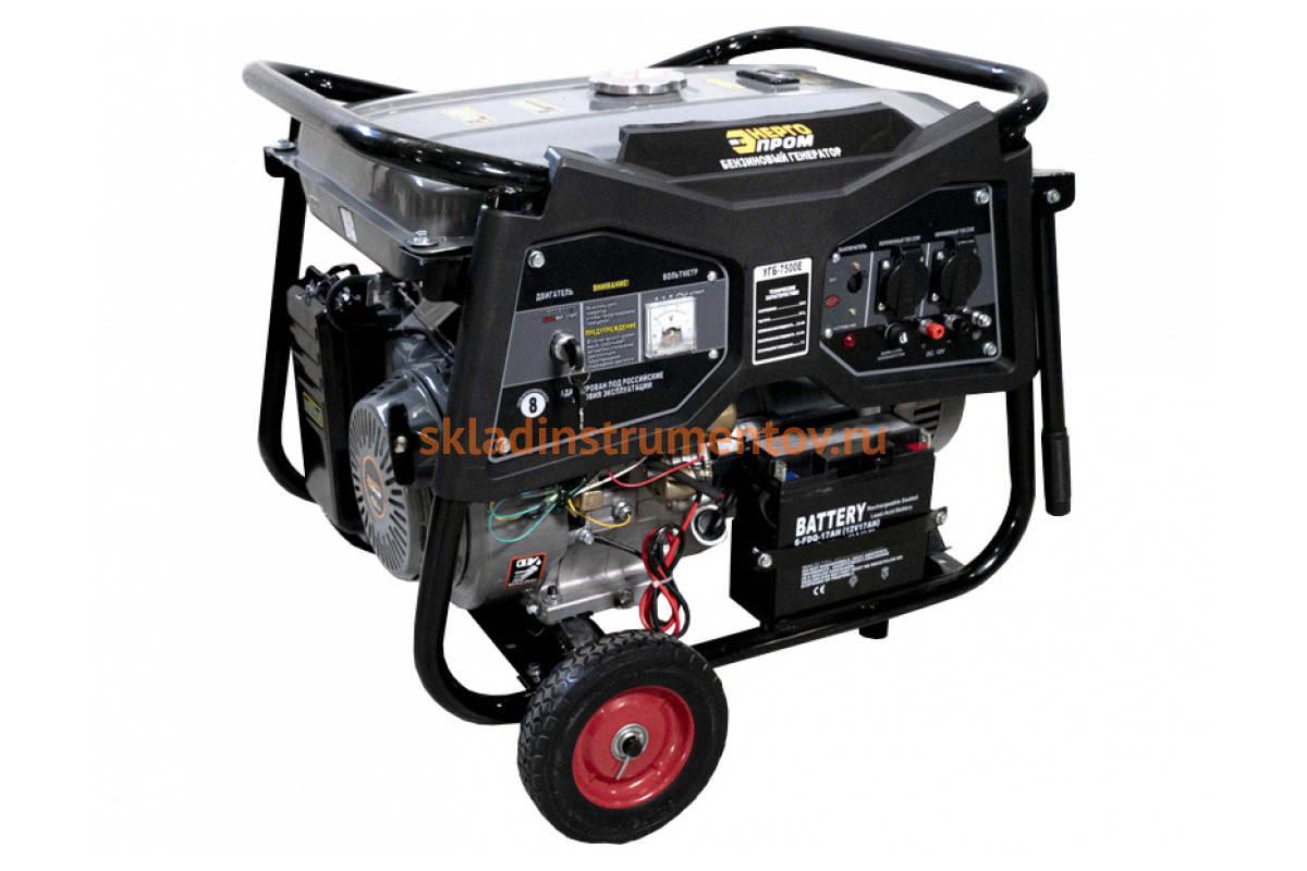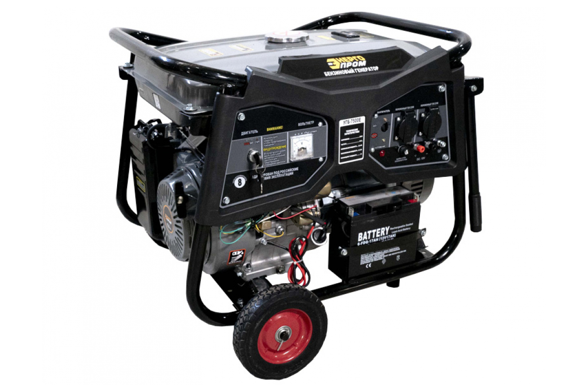 Бензиновый генератор ЭНЕРГОПРОМ 6,5кВт 420см³ УГБ-7500Е - современная и надежная модель бытового класса. Оснащена электростартером и блоком автоматики.