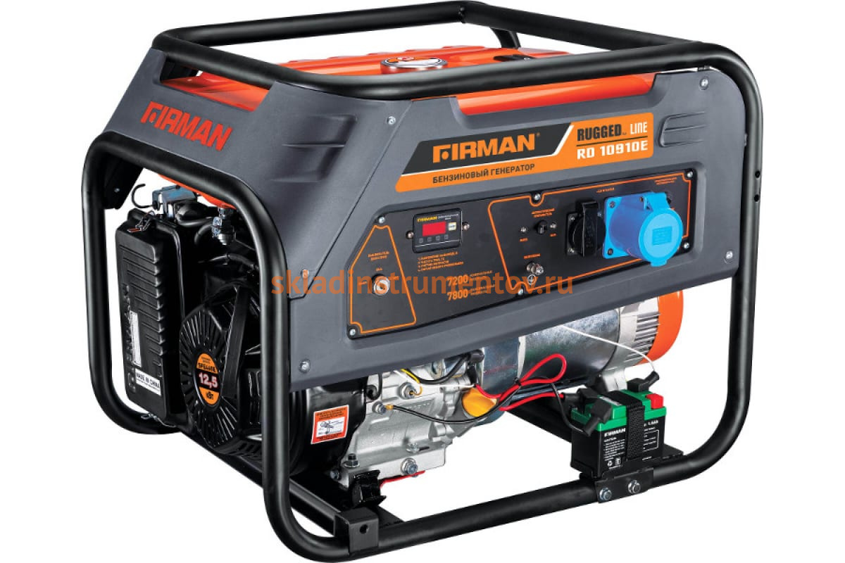 Бензиновая электростанция FIRMAN RD10910E RD10910E мощностью 7,8 кВт имеет четырёхтактный бензиновый двигатель с воздушным охлаждением.