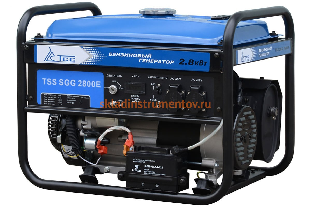 Бензогенератор TSS SGG 2800E-АВР предназначен для энергоснабжения бытовых приборов, садовой техники и инструмента переменным током 220 В. Агрегат предназначен для аварийного питания, его также можно использовать на даче или на пикнике.