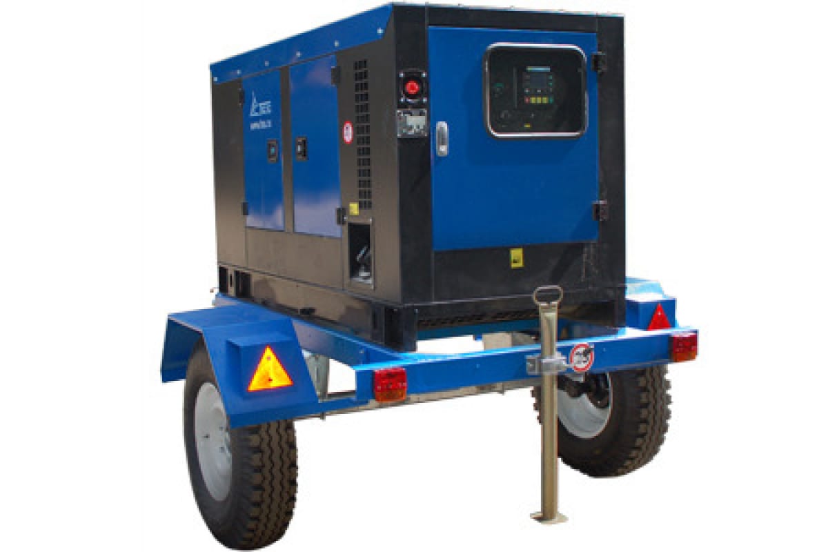 Дизельная генераторная установка в кожухе на шасси ТСС ДГУ ЭД-50-Т400-2РПМ19 000334 отличается низким расходом топлива и вместительным топливном баком, который гарантирует непрерывную работу в течение 13 часов при нагрузке в 75%. Удобное расположение аварийной кнопки позволяет быстро остановить работу генератора в случае неисправности. Модель эффективно используется на строительных площадках и в различных учреждениях, требовательных к стабильности энергоснабжения.