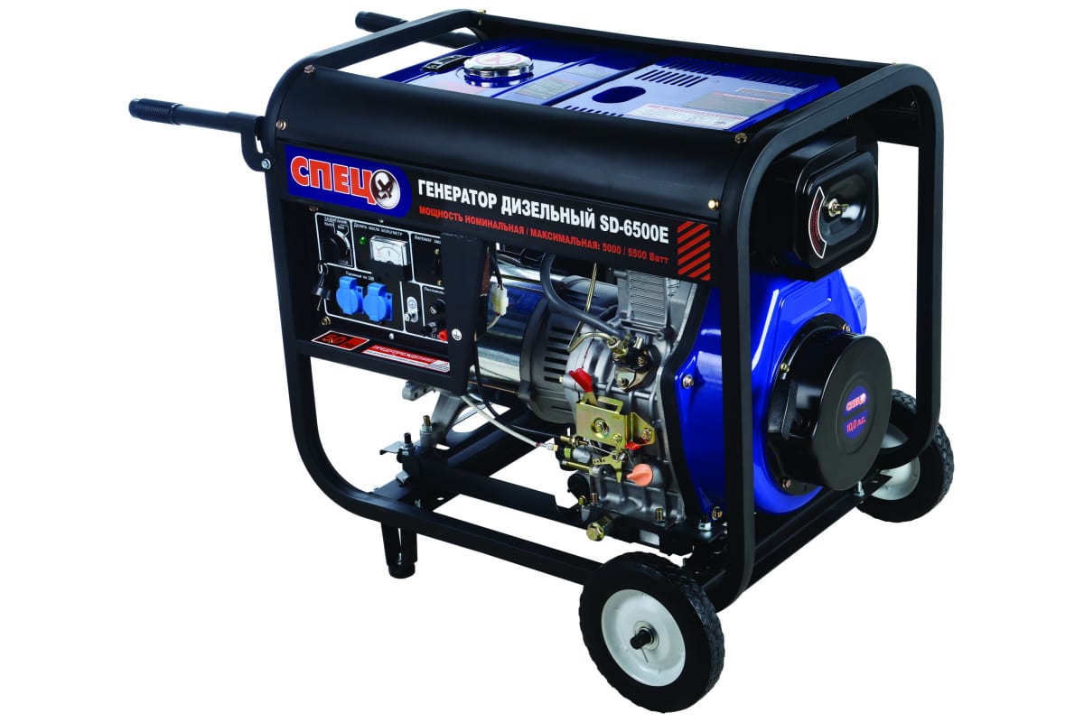 Дизельный генератор СПЕЦ SD-6500Е оснащен четырехтактным двигателем высокой мощности. Изделие можно применять в качестве основного или вспомогательного источника энергии для подпитки: