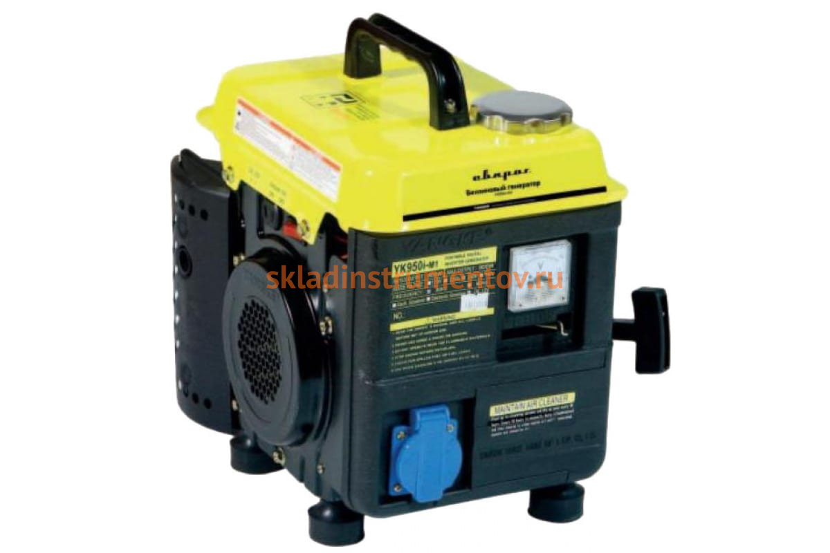 Бензиновый инверторный генератор Сварог YK950i-M1 - бытовое устройство, вырабатывающее электрический ток мощностью 800 Вт за счет сжигания бензина в двигателе внутреннего сгорания. Используется в качестве резервного источника питания на даче и для питания электроприборов на пикнике. В качестве силового агрегата применяется двухтактный двигатель мощностью 2 л.с. Благодаря небольшому весу и удобной рукояти в верхней части корпуса перенести устройство не составит никакого труда.