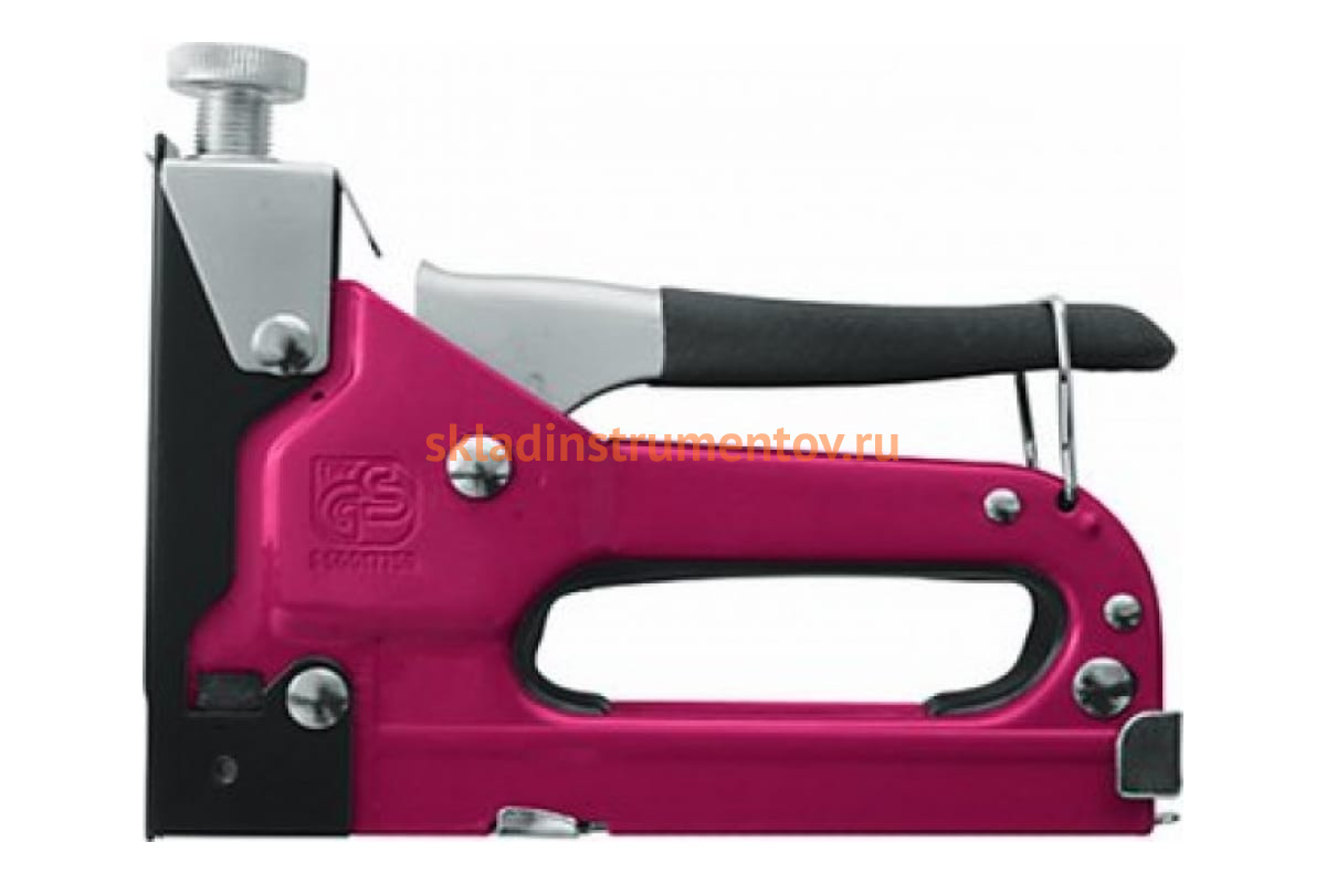 Степлер Контрфорс 080680 предназначен для закрепления обивки мебели, укрепления плакатов, закрепления проволочной сетки и строительства теплиц. Модель имеет три позиции под работу с различными типами скоб - 140, 300, 28. Сверху на корпусе имеется регулировочный винт, позволяющий максимально точно настроить силу удара под конкретную плотность материала.