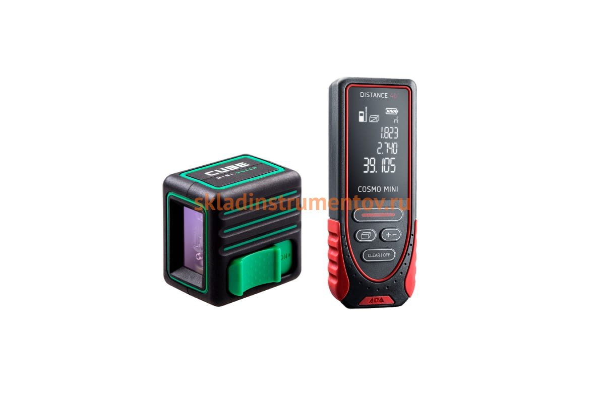 Комплект: лазерный уровень ADA CUBE MINI GREEN + лазерный дальномер ADA COSMO MINI 40 ADA А00627 может использоваться при строительных, отделочных и ремонтных работах.