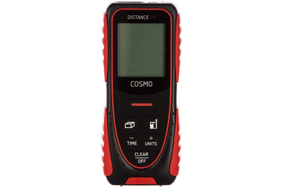 Лазерный дальномер ADA Cosmo 70 А00429 - профессиональный прибор, способный измерять расстояния до 70 м. Он прост и удобен в использовании. Специальные протекторные накладки сверху и снизу корпуса защищают устройство от повреждений. Дальномер снабжен трехстрочным ярким дисплеем с постоянной подсветкой. Минимальная единица измерения - 1 мм. Модель питается от 2 батареек типа ААА. При бездействии прибор автоматически отключается через 180 секунд, что значительно экономит заряд батарей. Их хватает на более 5000 измерений. Имеется 3 точки начала отсчета.