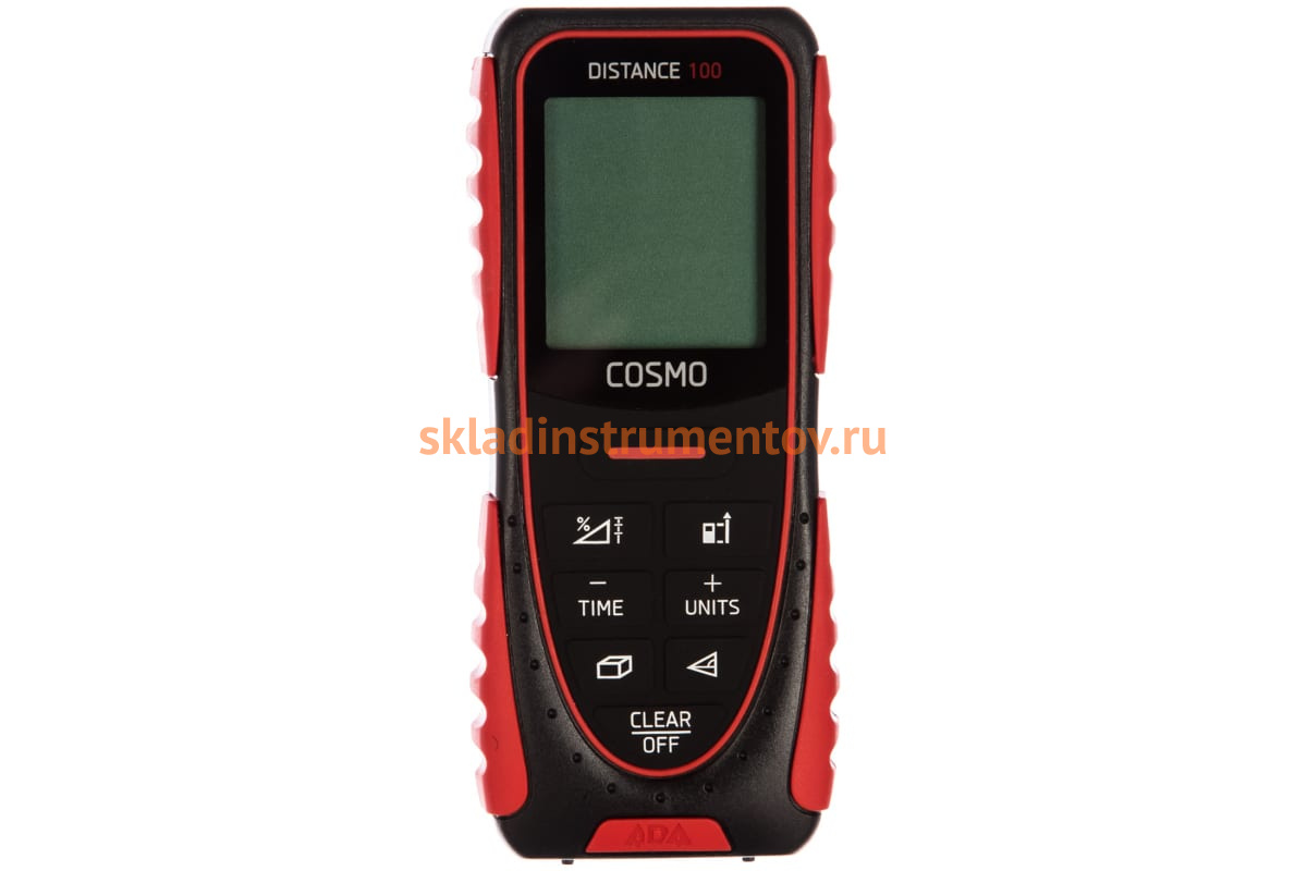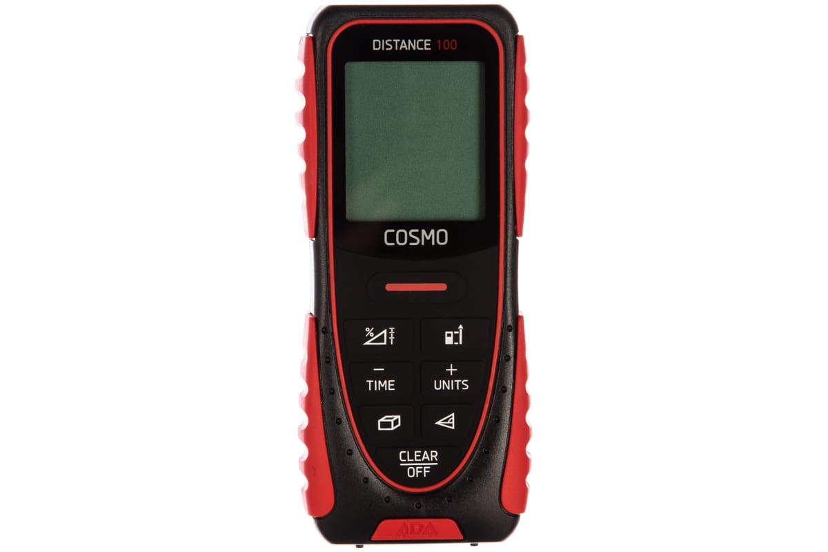 Лазерный дальномер ADA Cosmo 100 с функцией уклономера А00412 помогает измерять расстояния от 0.05 до 100 м. Он имеет функции: сложение/вычитание, вычисление площади, сложение/вычитание площадей, вычисление объема, косвенное измерение. При бездействии 3 минуты, прибор отключается автоматически. Модель питается от 2 батареек типа ААА. Срока их службы хватает на 5000 и более измерений.