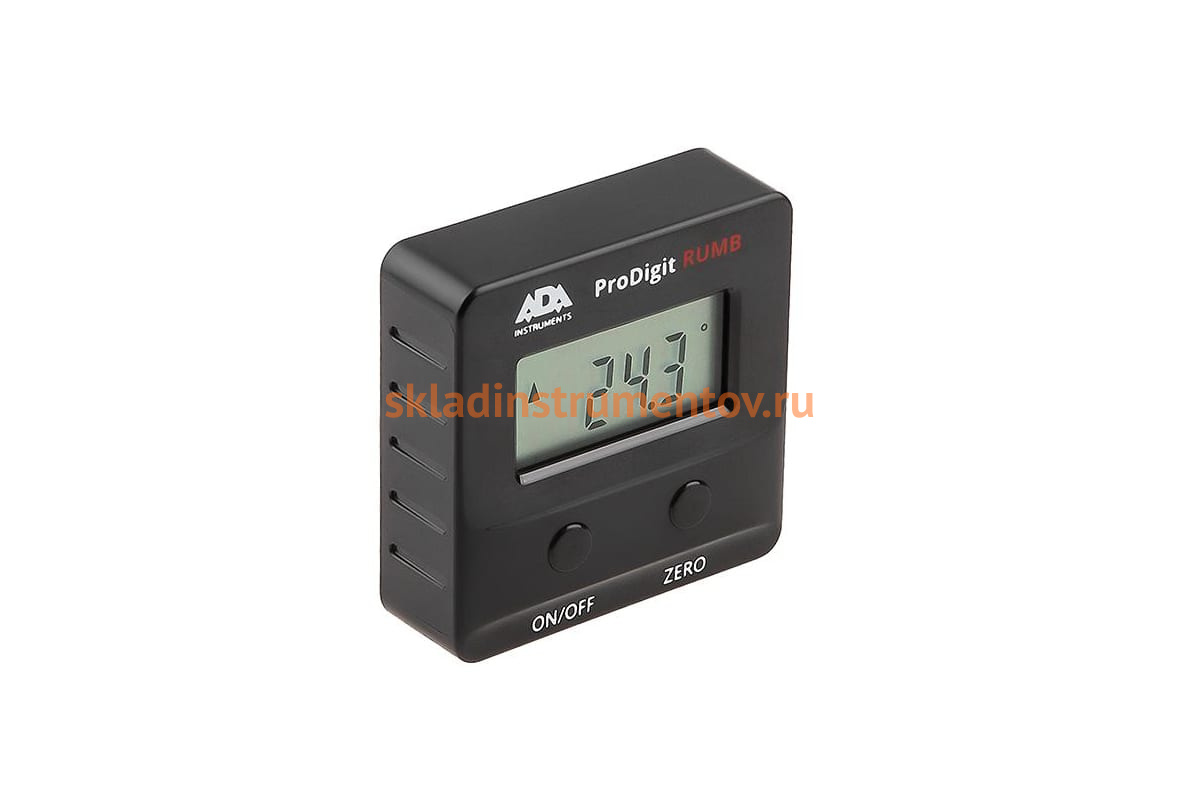 Цифровой уровень/угломер ADA Pro-Digit RUMB PROMO А00616 используется для быстрого и точного определения угла отклонения поверхности. Может крепится к вертикальной конструкции с помощью магнитного крепления.